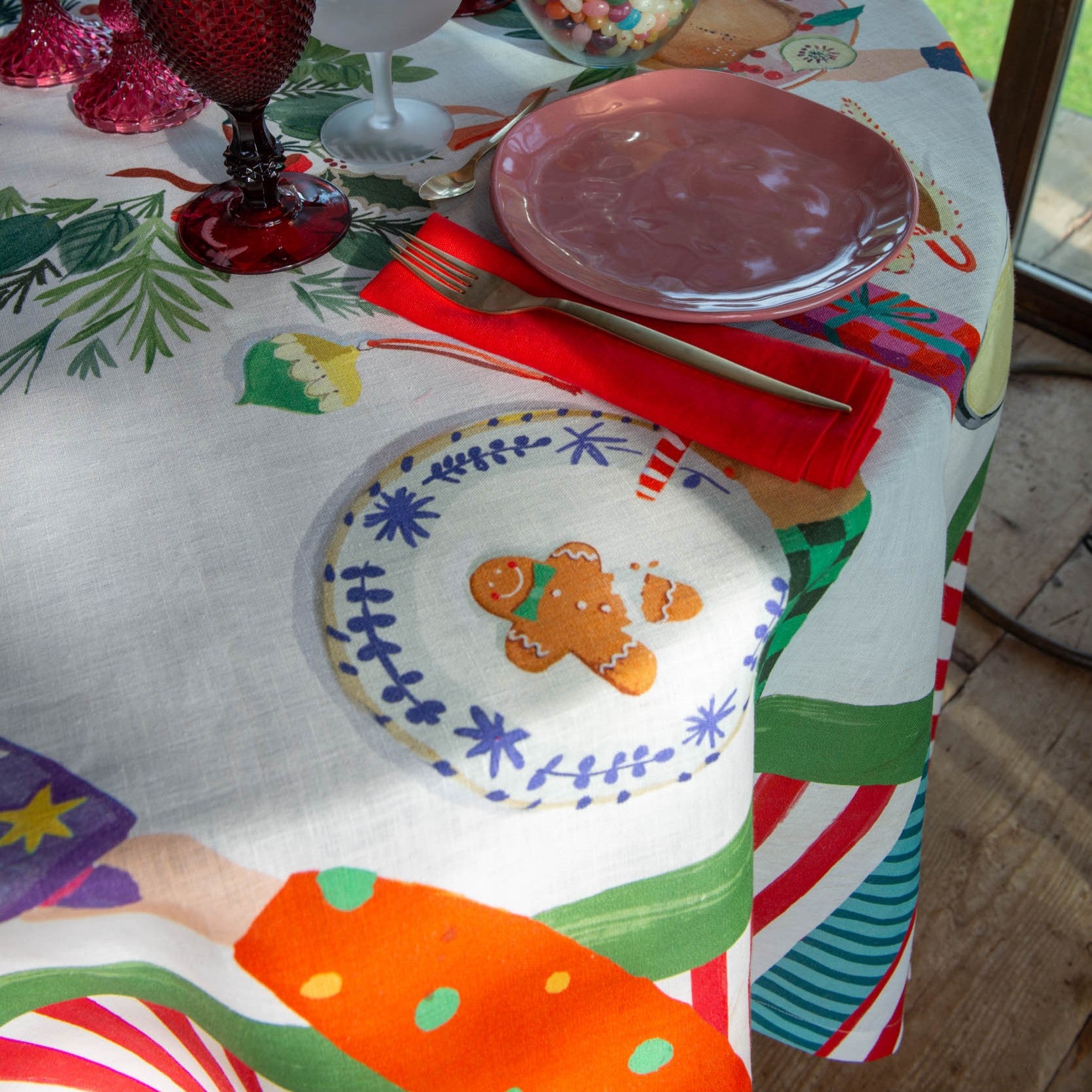 50% lino natural y 45% algodón estampado